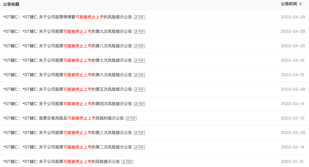 从身价百亿的富豪,到限制高消费的老赖,河南前首富朱文臣用了5年时间。 5月22日晚,*ST辅仁(原简称辅仁药业,SH600781)发布公告称,上交所决定终止公司股票上市。此外,辅仁药业实控人朱文臣因涉嫌信息披露违法违规,被证监会立案调查。 2023年5月22日,辅仁药业发布公告称,上交所决定终止公司股票上市 昔日医药白马股的辅仁药业,已被锁定退市命运,成为2023年首只A股退市医药股。 2023年以来,辅仁药业多次发布可能被终止上市的风险提示公告 眼看他起朱楼,眼看他宴宾客,眼看他楼塌了。辅仁药业的一地鸡毛,实控人朱文臣难辞其咎。 曾登上胡润百富榜的河南前首富,为何跌落神坛?几年前还市值百亿的辅仁药业,又缘何走到退市地步? 01 百亿市值的崩盘 辅仁药业的退市,其实早有征兆。 2019年的“分红风波”,揭开了辅仁药业财务危机的冰山一角。 2019年7月16日,辅仁药业发布2018年分红公告,以每10股派1元的方案,预计派发现金红利约6271.58万元。 辅仁药业发布2018年分红公告,以每10股派1元的方案,预计派发现金红利约6271.58万元/图源:辅仁药业2018年年度权益分派实施公告(图为部分截图) 这是辅仁药业上市多年来为数不多的几次分红,股民们攒足了欢喜与期待。 谁料仅仅三日后,辅仁药业出尔反尔,称因资金压力较大,现金红利无法按时发放。 2019年7月19日,辅仁药业发布关于调整2018年年度权益分派有关事项暨继续停牌的公告(图为部分截图) 值得注意的是,根据2019年一季度财报,公司合并报表上有18.16亿元的货币资金。 手握18亿元资金,却拿不出6000万元的分红?这在所有人看来,都不合常理。 辅仁药业的这一行为引起了上交所与证监会的关注。在当年7月24日的问询函回复公告中,辅仁药业吐露实情。截止2019年7月19日,公司及子公司拥有现金总额1.27亿元,其中受限金额1.23亿元,实际可用资金仅377.87万元。 18亿元资金不翼而飞,偌大上市公司账面上仅剩不到400万元能用。 钱,都去哪了? 监管部门调查后发现,2015年至2018年期间,辅仁药业分别虚增货币资金4.13亿元、5.76亿元、4.67亿元和13.37亿元。总计近30亿元。 调查结果显示,朱文臣利用辅仁药业控股股东——辅仁药业集团有限公司(以下简称“辅仁集团”),以及辅仁集团母公司河南辅仁控股有限公司(以下简称“辅仁控股”)等公司,连续多年非经营性占用上市公司资金。 同时,朱文臣还利用辅仁药业,违规向辅仁集团及关联方提供担保。 上市公司资金被掏空,辅仁药业成为控股股东的“提款机”。 因其存在虚假记载、重大遗漏、违规担保、违规减持等多项违法行为。2020年,公司高管被监管部门进行处罚,朱文臣被采取10年证券市场禁入措施。 2020年10月,辅仁药业高管被监管部门处罚,朱文臣被采取10年证券市场禁入措施/图源:证监会官网 然而,监管部门的处罚对于早已千疮百孔的辅仁药业来说,已是于事无补。 财报数据显示,截至2022年12月31日,公司控股股东辅仁集团及关联方资金占用金额16.18亿元,上市公司向辅仁集团及关联方提供担保尚有担保余额17.26亿元。 控股股东的锅,上市公司来背。 2022年,辅仁药业营收约14.69亿元,同比减少2.9%,亏损超28亿元。辅仁药业称,业绩下滑主要系受资金困难影响,公司部分业务出现下滑。 2020年-2022年营收情况/图源:辅仁药业2022年年度报告 不止业务下滑,辅仁药业已资不抵债。 2022年末,辅仁药业归属于上市公司股东的净资产为-20.09亿元,较同期减少-351.11%。 深圳旭泰会计师事务所出具的审计报告中则透露,辅仁药业存在债务逾期不能偿还、违规对外担保等事项已构成违约并涉及诉讼、裁定、资产保全案件192起,账面已计提预计负债12.63亿元。 其认为,辅仁药业在2022年报告期内,出现流动性困难,面临债务逾期无法偿还以及对外担保承担连带赔偿的资金压力,同时涉及多起诉讼、部分银行账户及资产被冻结,“持续经营能力存在重大不确定性。” 02 原医药白马的商业帝国 辅仁药业的起家,离不开朱文臣的“买买买”。 从皮鞋厂经理起家的朱文臣,在攒下第一桶金后,涉足医药行业。先是率朱氏兄弟成立河南三维药业,后在其基础上,于1997年成立了辅仁集团。 朱文臣的发迹与辅仁药业的发展,离不开仿制药的黄金年代。上世纪末至2000年初,正是国内仿制药野蛮生长的年代。 朱文臣在此期间,先后收购了焦化怀庆堂、开封制药厂、信阳天康制药厂等企业。在2006年借壳ST民丰上市之时,辅仁药业已成为河南省最大的药企,产品除中成药外,还覆盖化药、原料药等领域。 被朱文臣以5000万元收购的开封制药厂可是大有来头。不仅是上世纪50年代全国仅有四家能生产疫苗的药企之一,还是卫生部最早批准、生产头孢原料的企业。 原开封制药厂产品广告/图源:开封制药公众号 河南老牌国有药厂开封制药,当时资产是辅仁药业的6倍。这一举措,让辅仁药业生产能力大增,一跃成为河南省第一药企。 令人奇怪的是,当时如日中天的健力宝原总裁张海,作为开封人,想以9000万价格收购开封制药厂,却不了了之。其中足见朱文臣的关系与手腕。 上世纪70—80年代开封制药厂厂区图/图源:开封制药公众号 除了制药,让朱文臣名声大噪的,还有收购宋河酒业。 宋河酒业早在1989年就被评为“中国名酒”,更是在2002年被河南省指定为“河南省接待专用酒”,从而奠定了“豫酒第一品牌”的地位。 2002年,朱文臣参与宋