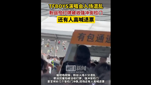 8月6日,TFBOYS组合在西安举行演唱会。据媒体报道,TFBOYS十周年演唱会入场混乱,有人高喊退票,粉丝怕灯牌被收强冲安检门。